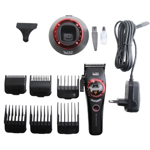 • Incluye: Base y cable de carga, 8 Peines alzas de fijación magnética (1.5, 3.0, 4.5, 6.0, 10, 13 mm.), protector de cuchilla, cepillo de limpieza y aceite lubricante de cuchillas